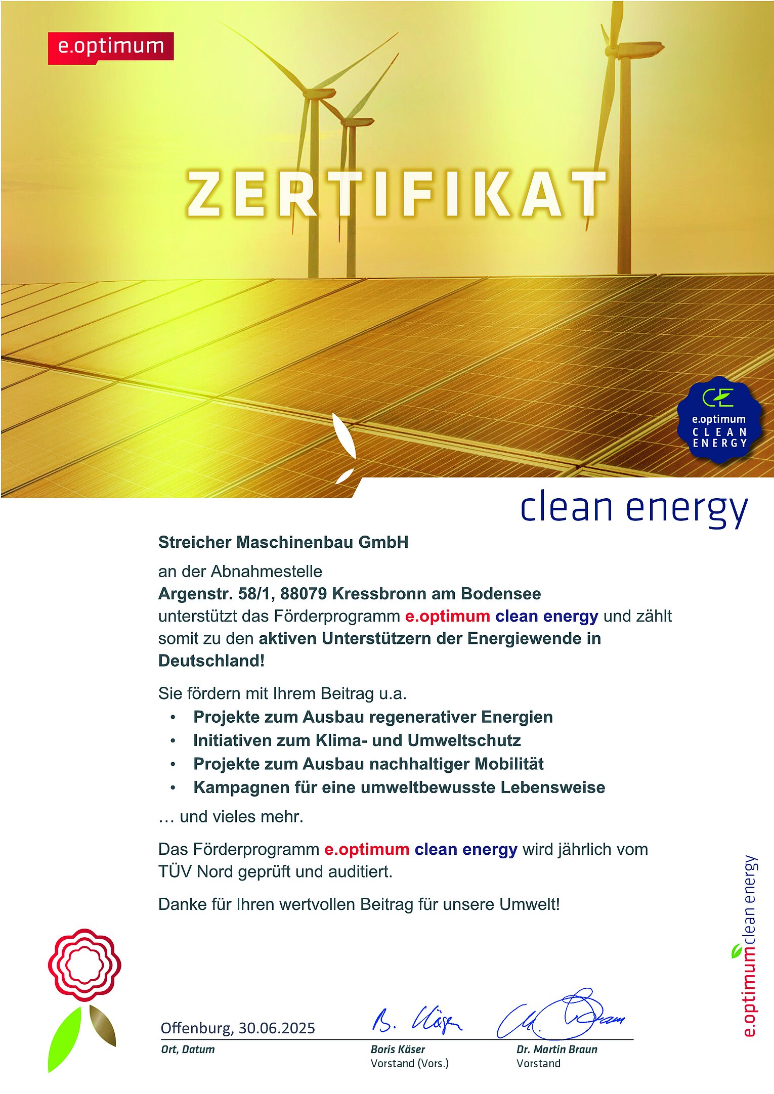 Zertifikat clean energy