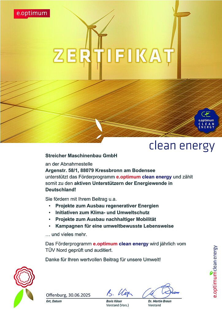 To further reduce our ecological footprint, we are planning to set up a high-performance battery storage system. This will enable us to cover up to 82% of our energy requirements from our own renewable sources in future – another step towards energy independence and environmental protection.