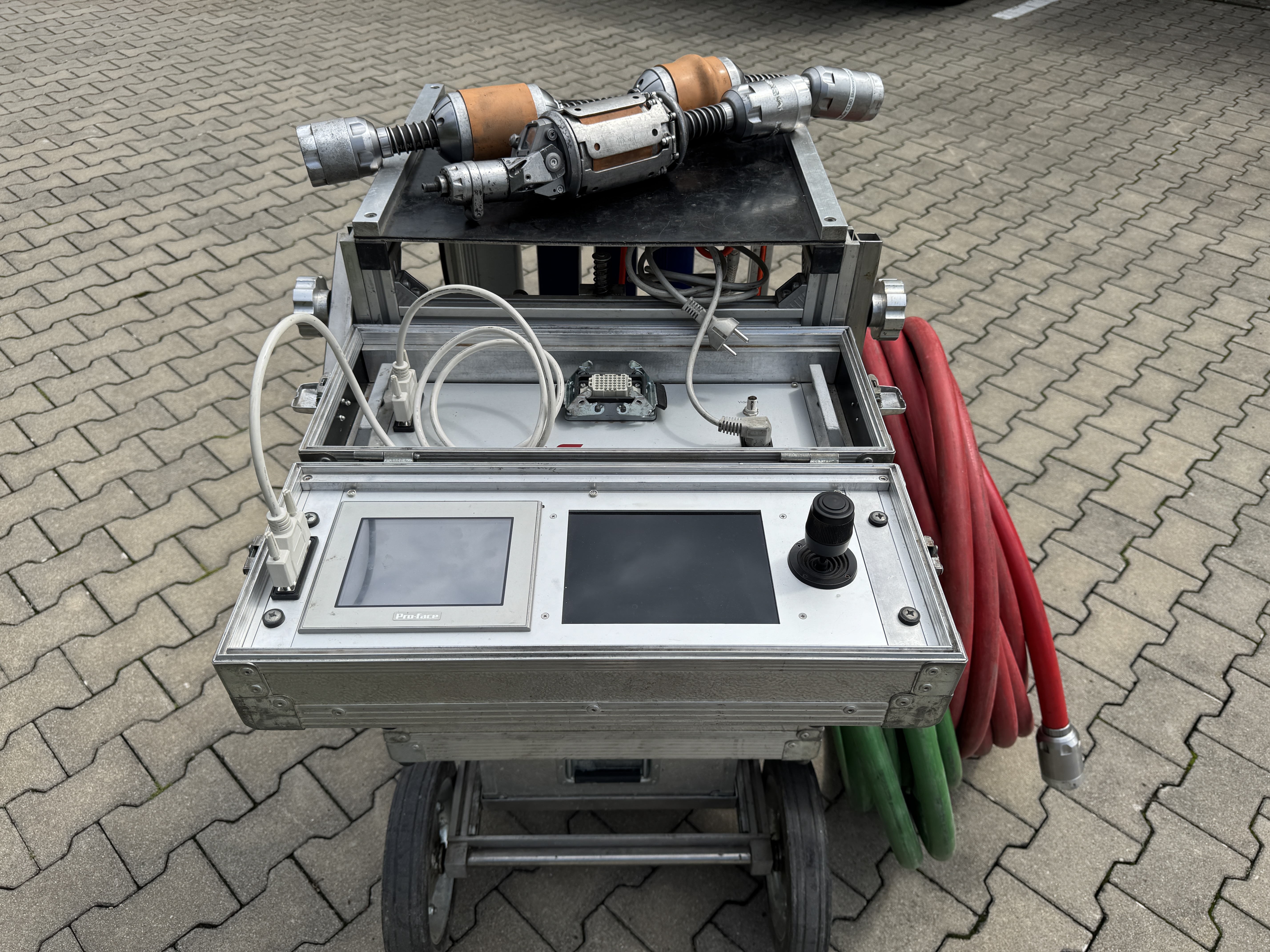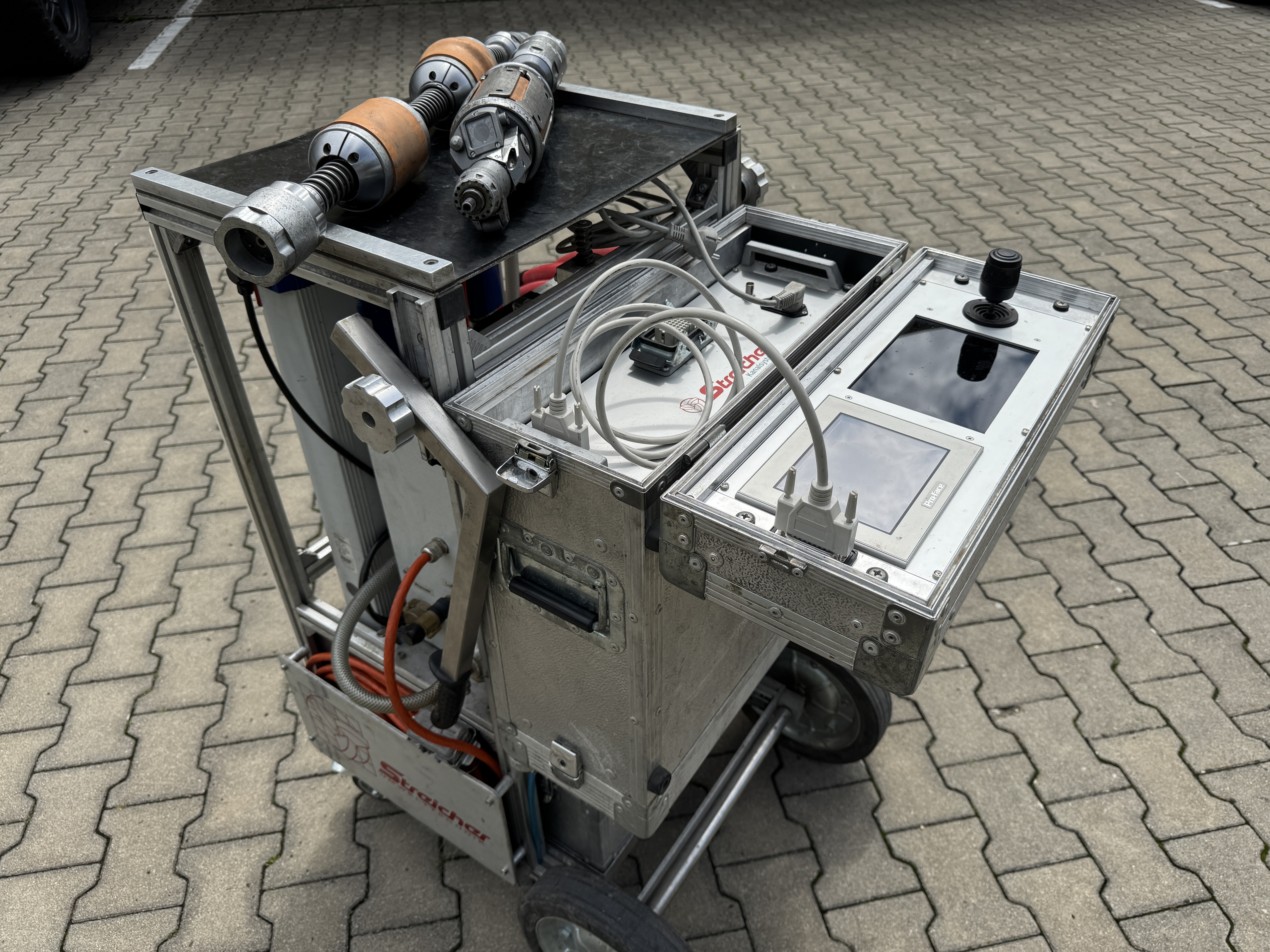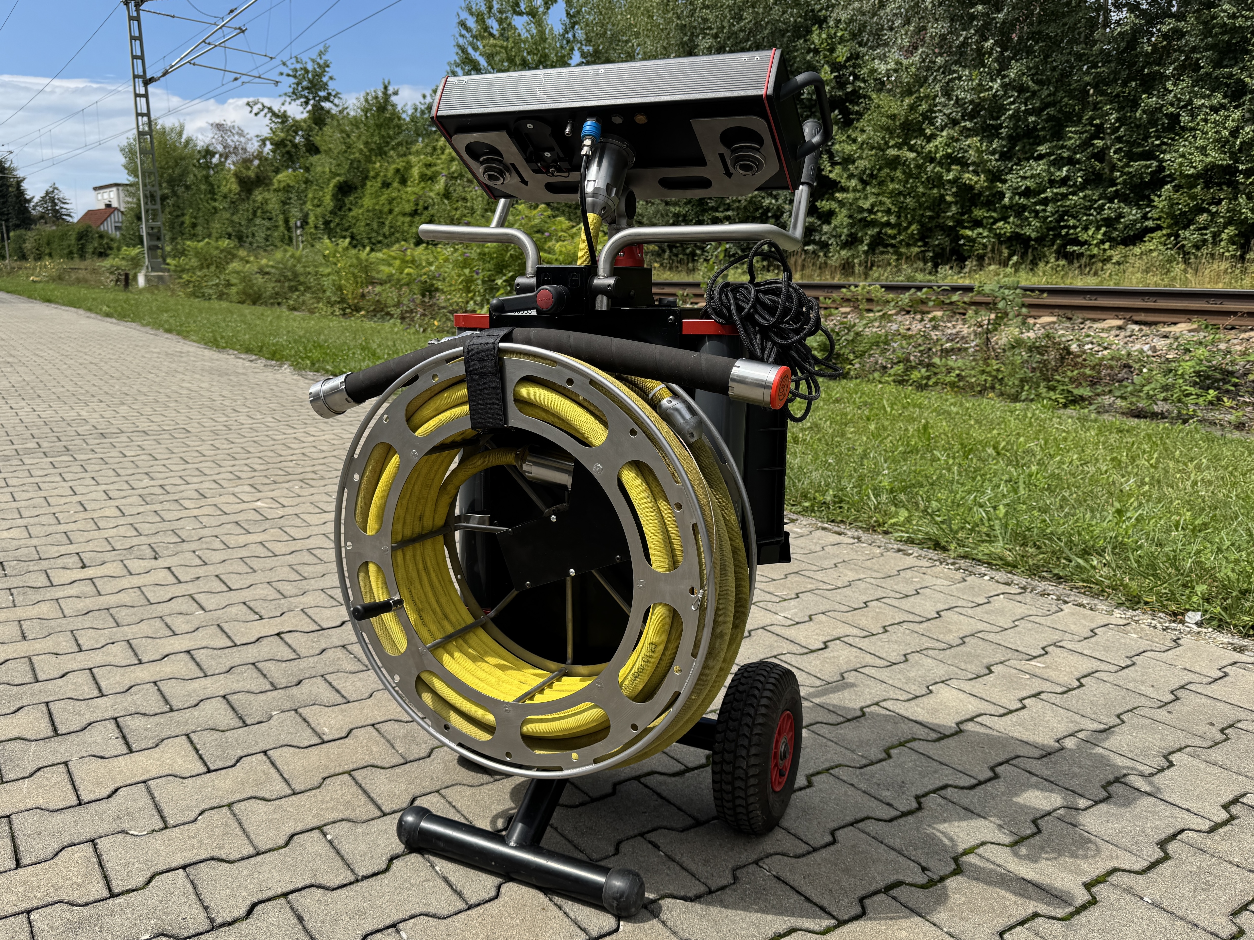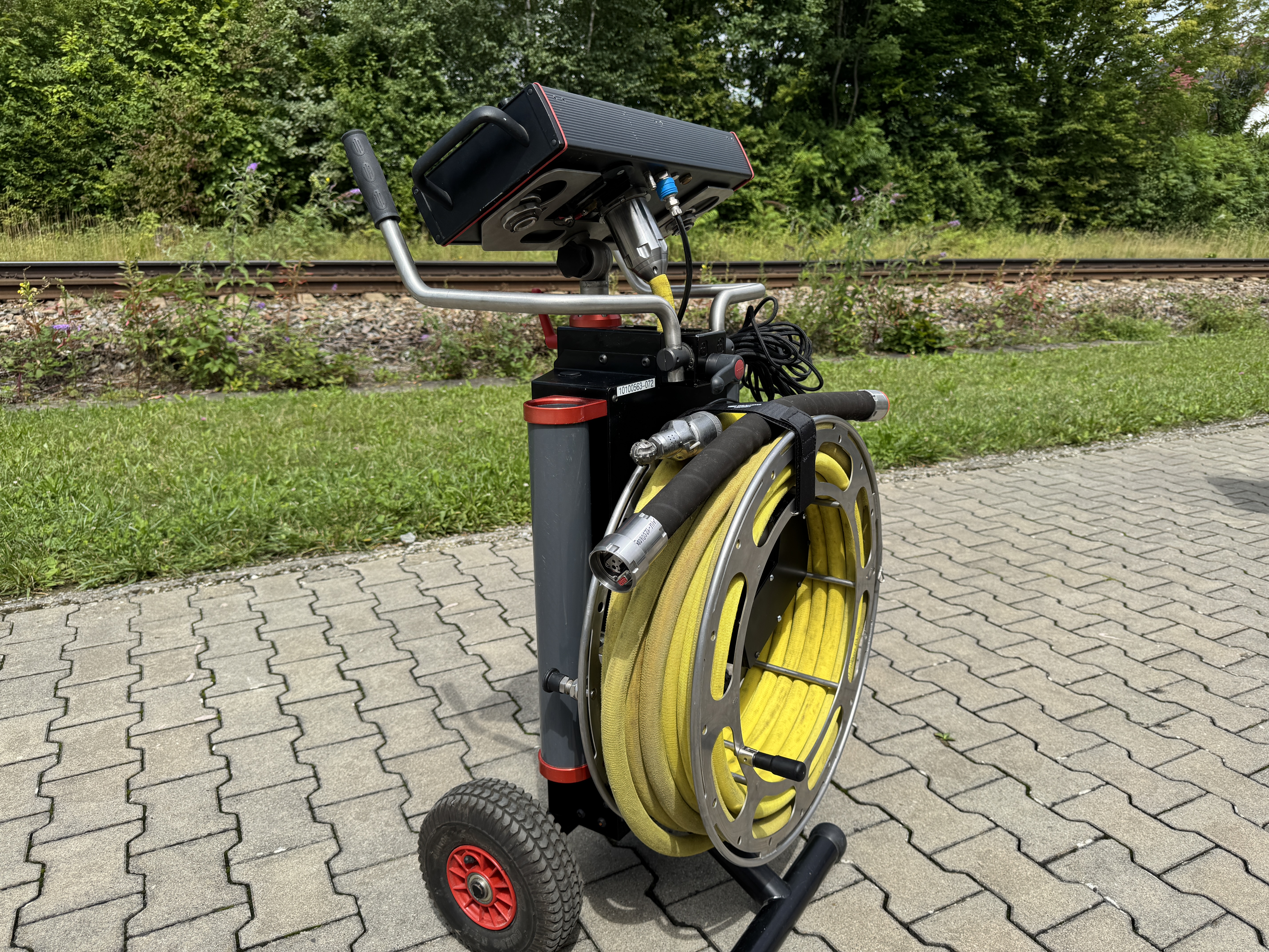 - Equipment trolley: height and tilt adjustable, 2-liter water tank for camera rinsing, 2 replacement batteries