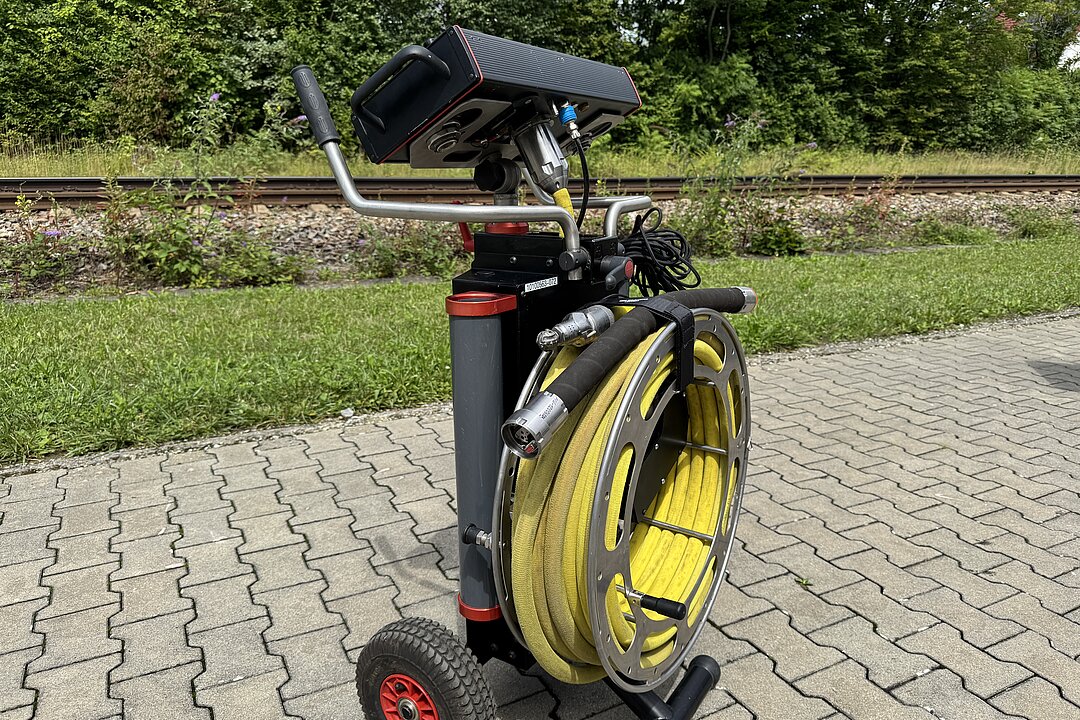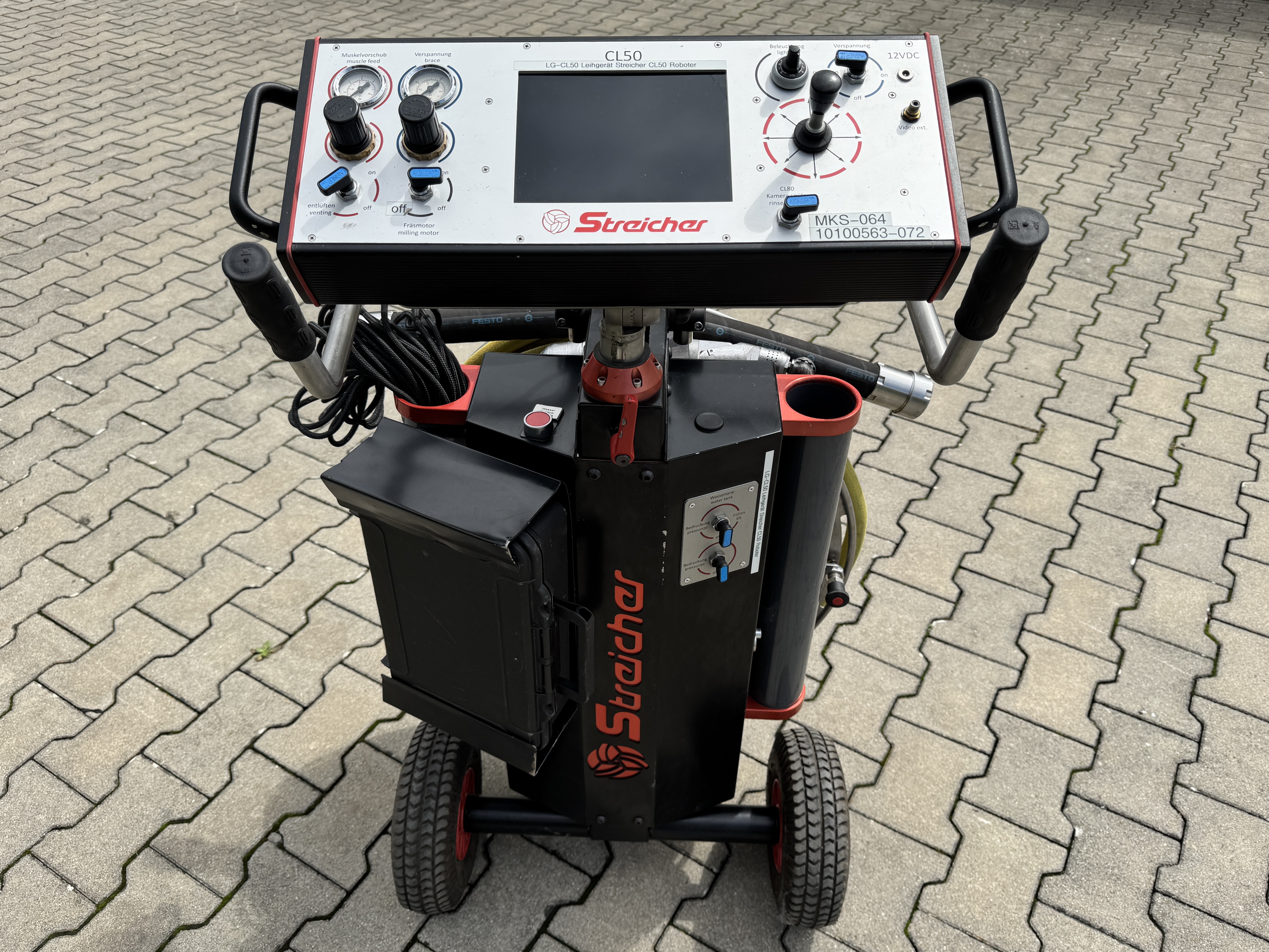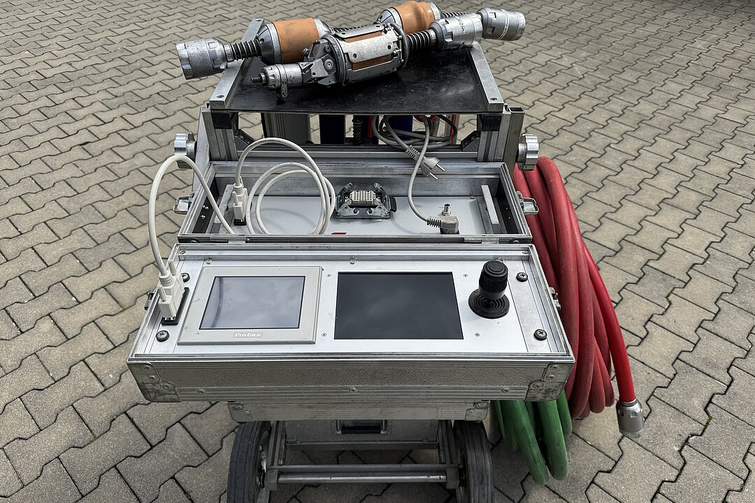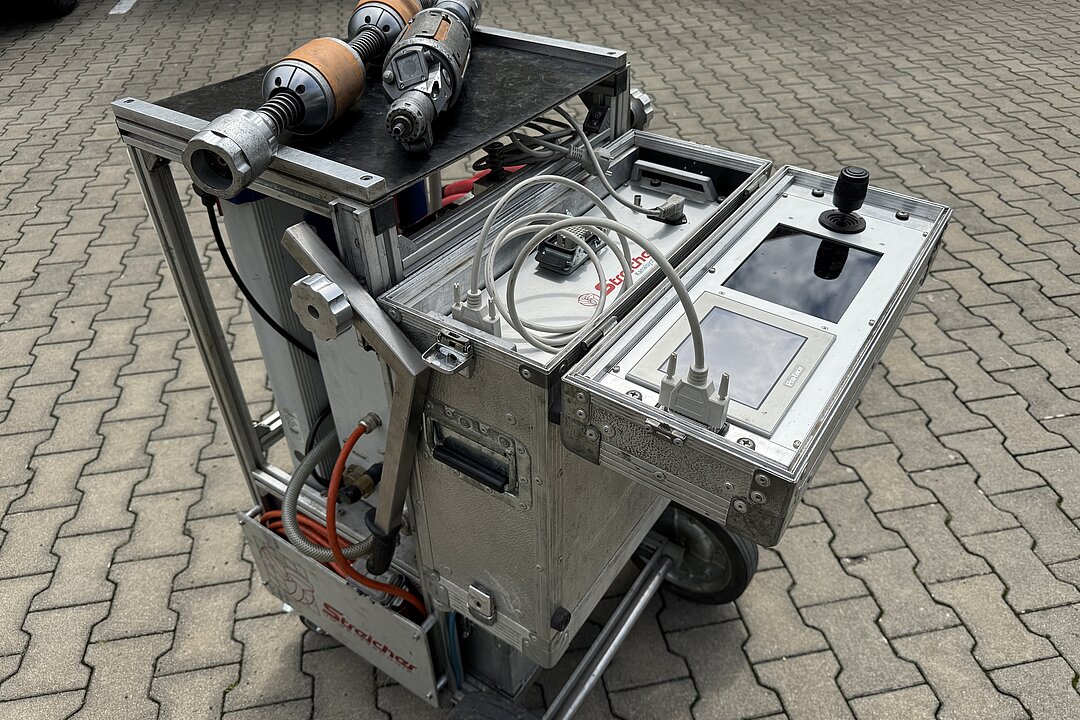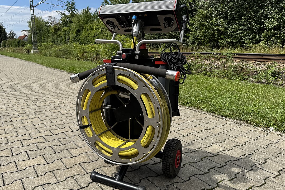 - Equipment trolley: height and tilt adjustable, 2-liter water tank for camera rinsing, 2 replacement batteries