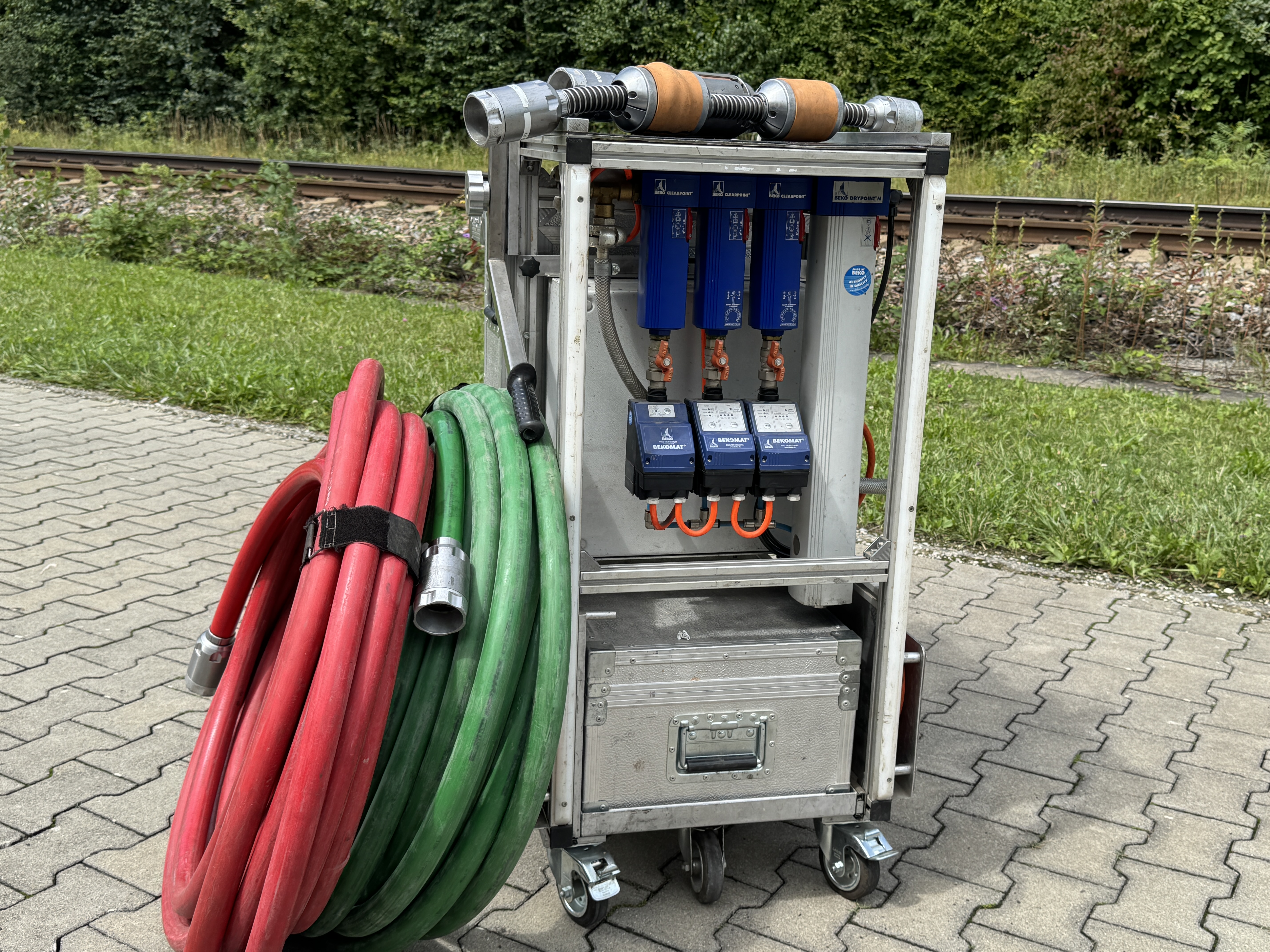 - Camera cleaning via compressed air and water (in combination with the equipment trolley)