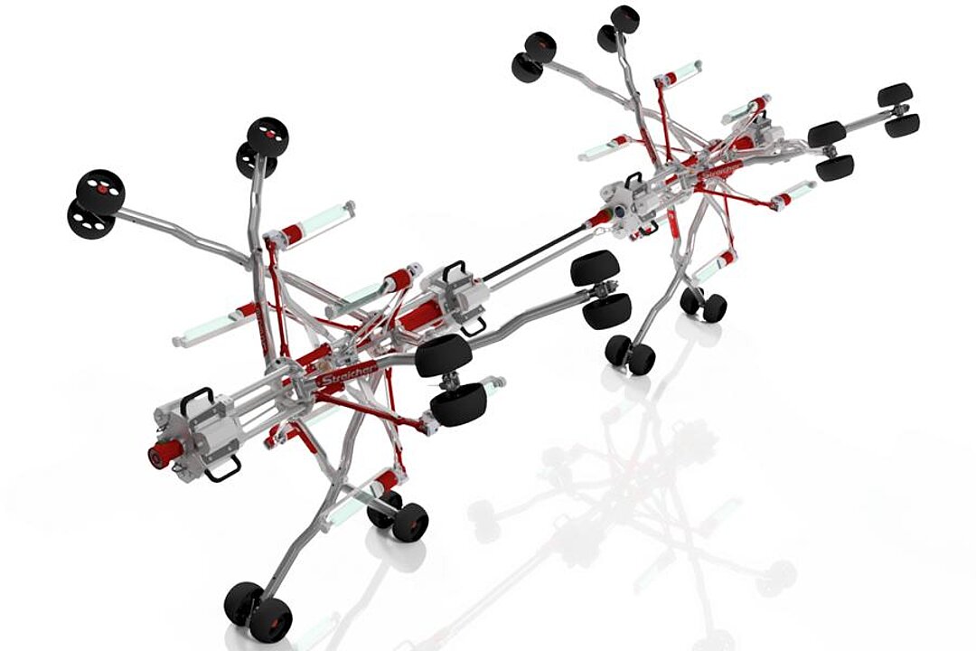So können Kurzliner auch nur mit einem Kern befahren werden. Die SK2000 ist mit elektrisch ausfahrbaren Beinen und Strahler bestückt, die durch Lampenkäfige vor mechanischer Beschädigung geschützt werden. Hitzebeständige Teflonräder verhindern das Anhaften von Harzpartikeln.
