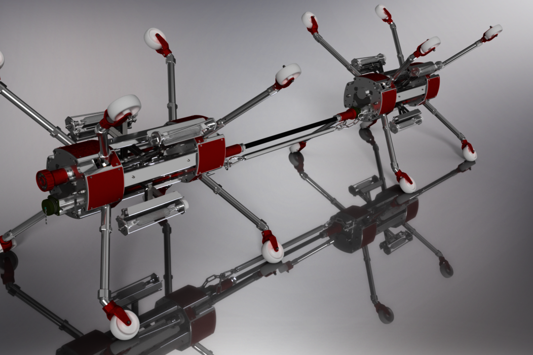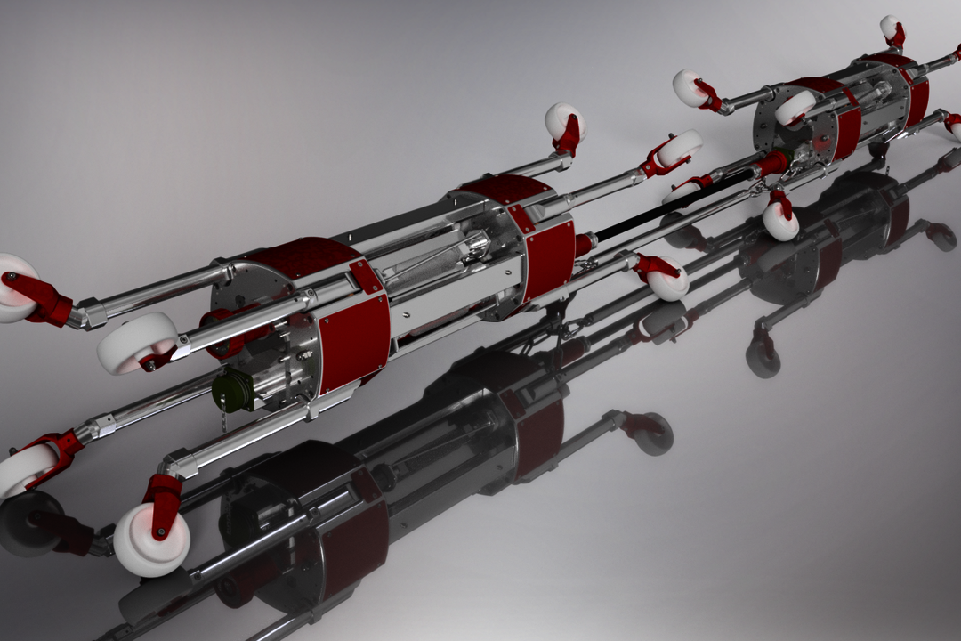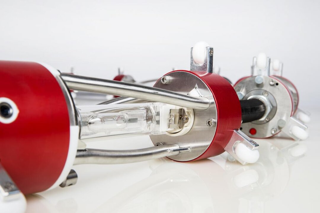 Mit der Strahlerkette SK1500 werden harzgetränkte Glasfaser-Inliner effizient ausgehärtet. Die Kette besteht aus zwei identisch aufgebauten, autarken Kernen. Jeder Kern verfügt über vier radial angeordnete UV-Strahler mit jeweils 1000 Watt. Die Montage von unterschiedlich langen Beinrohren ermöglicht die Anpassung an verschiedene Rohrdurchmesser. Damit die Kette schnell durch den Packer in den Liner gelangt, sollte sie so klein wie möglich sein. Damit dies erreicht wird, lassen sich Beine und Strahler einfahren.