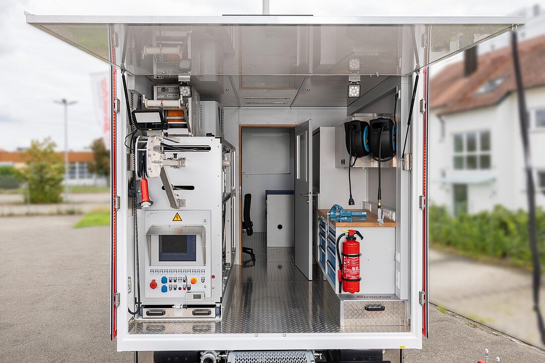 Mittels luftgekühlter Frontkamera kann die Qualität des eingezogenen Liners beim Durchziehen der Kette überprüft werden. Fehler wie Faltenbildung, Lufteinschlüsse oder beschädigte Innenfolie, verursacht durch einen nicht fachgerechten Einbau, werden erkannt. Vier in der Kette eingebaute Sensoren informieren über die Temperaturentwicklung im Liner.